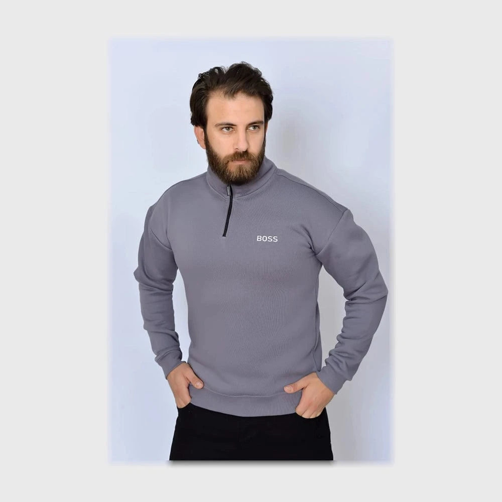 سويتشيرت نص سوسته رجالي ملتون قطن اسفنجي رصاصي شتوي من الهيبه - 2200-g