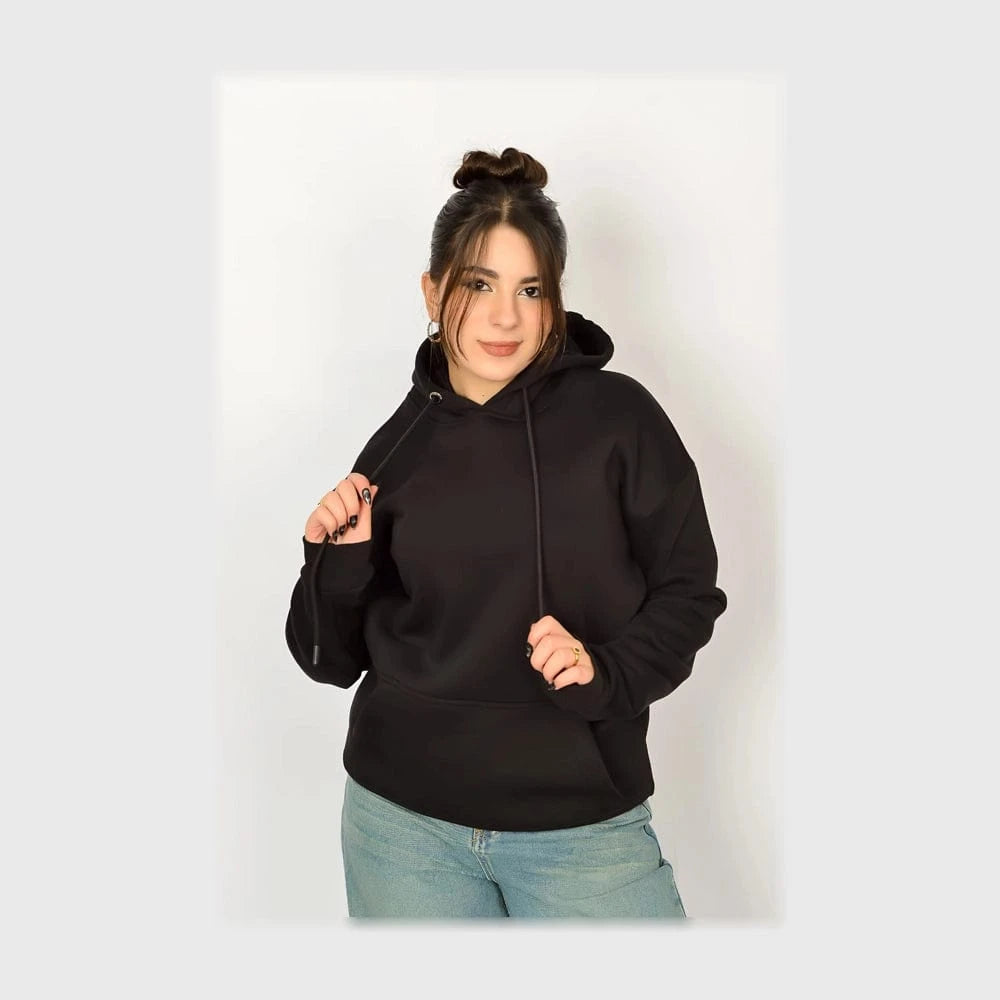 سويتشيرت هودي ساده اوفر سايز حريمي ملتون قطن اسفنجي اسود شتوي من الهيبه - 2250-B