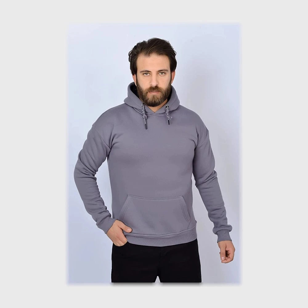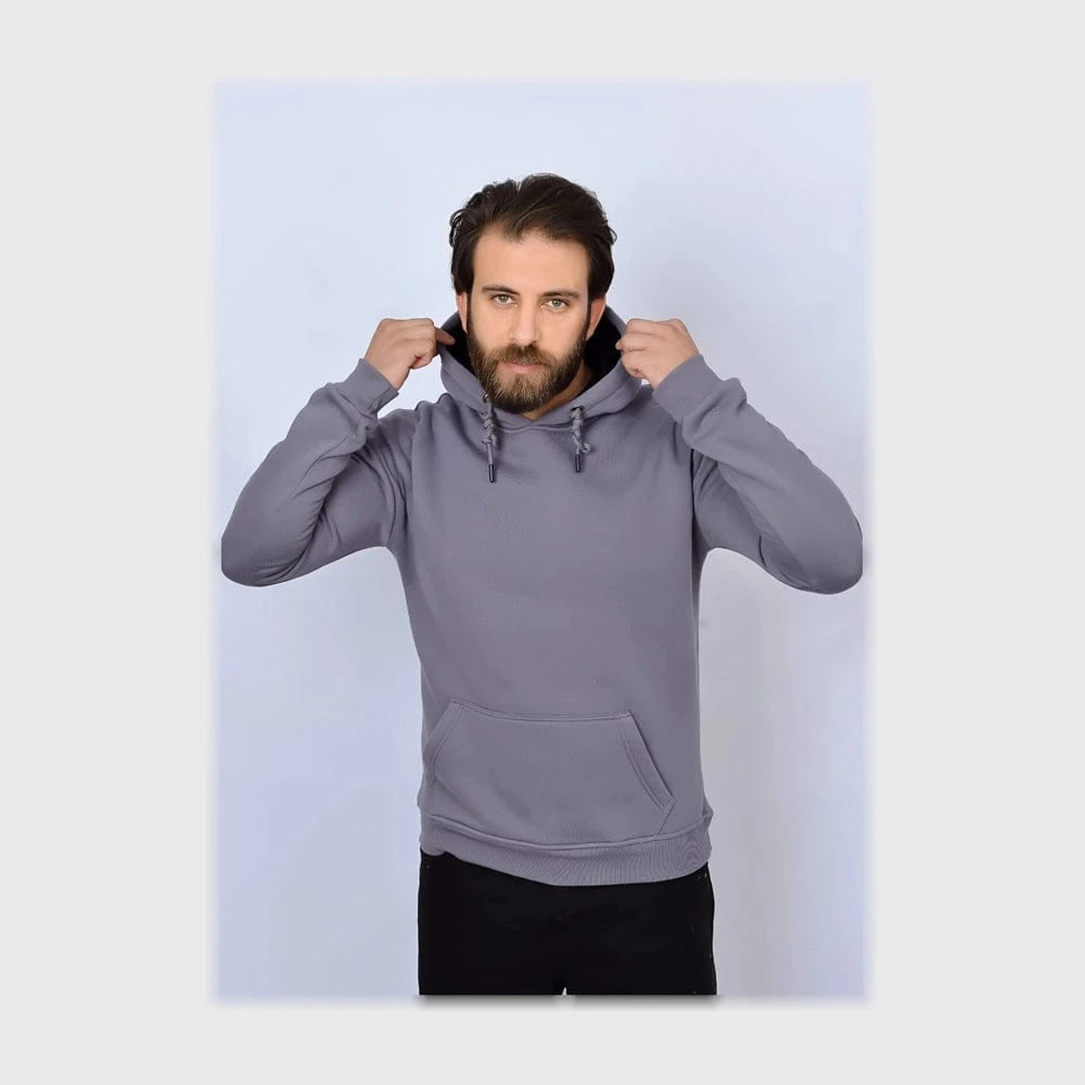 سويتشيرت هودي ساده اوفر سايز رجالي ملتون قطن اسفنجي رصاصي شتوي من الهيبه - 2300-G