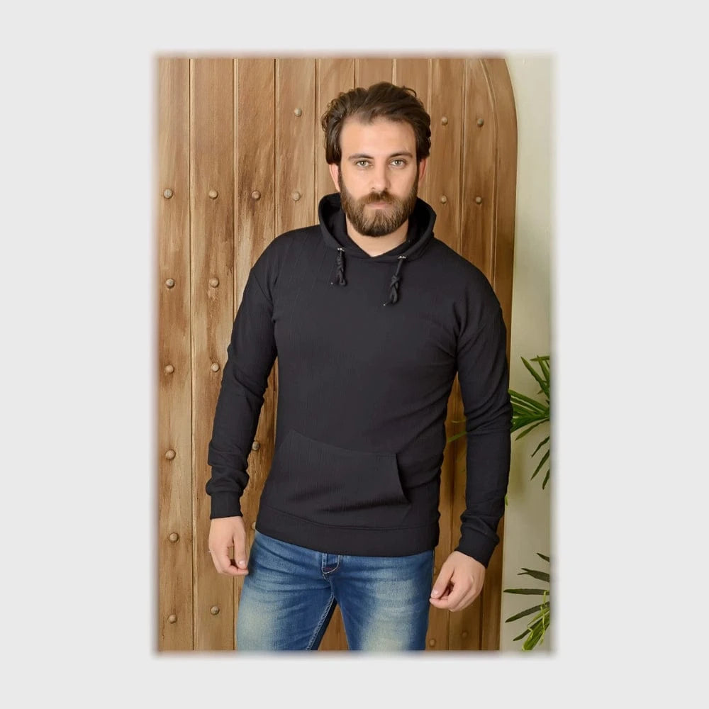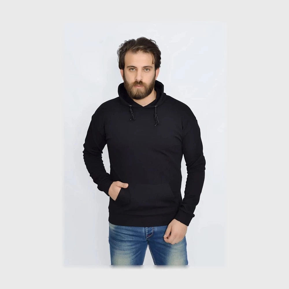 سويتشيرت هودي ساده رجالي مارسيليا مكستر اسود شتوي من الهيبه - 2350-B