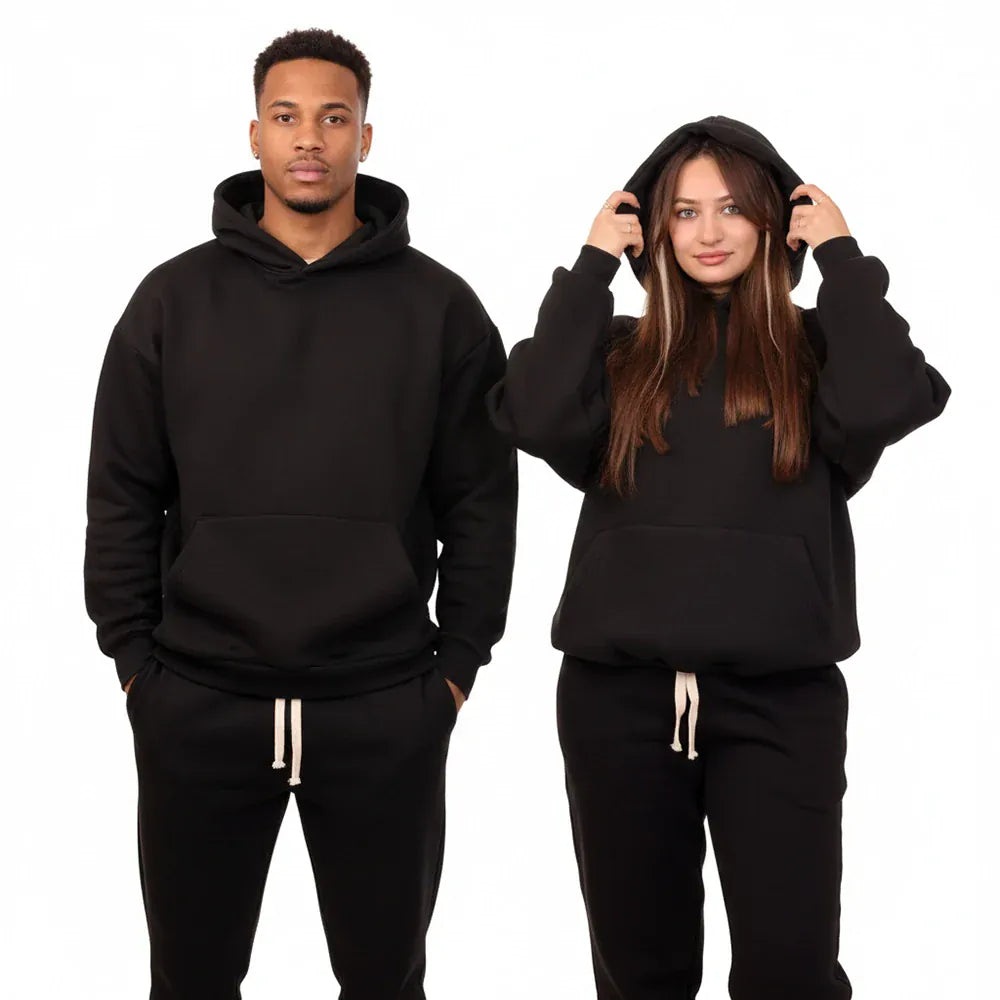 سويتشيرت هودي ساده للجنسين قطن اسفنجي اسود شتوي من اتش - HOOd-Black