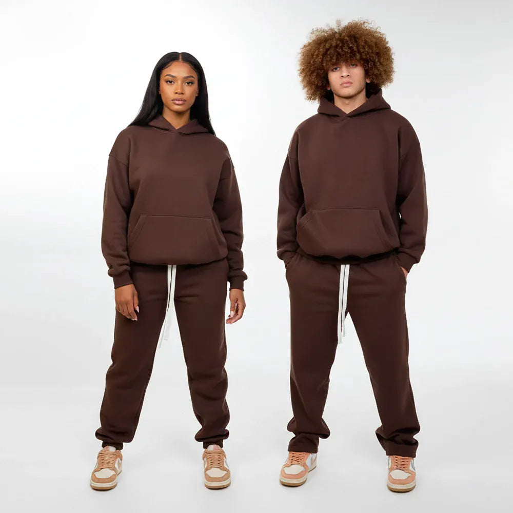 سويتشيرت هودي ساده للجنسين قطن اسفنجي بني شتوي من اتش - HOOd-Brown
