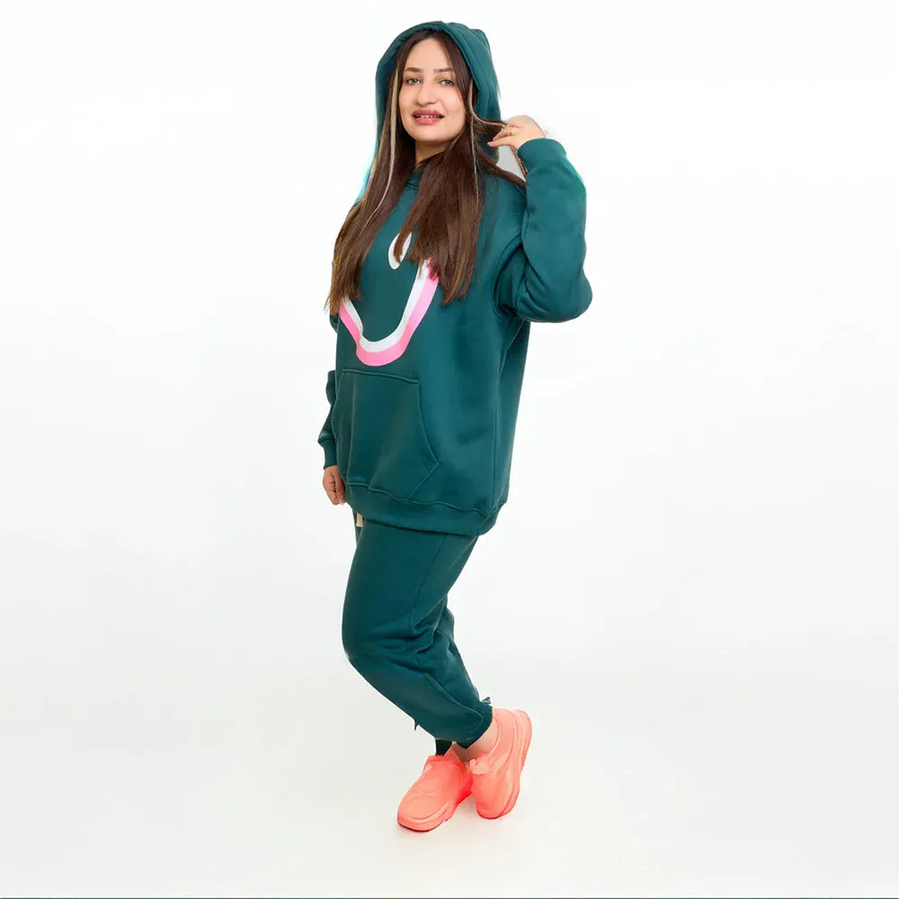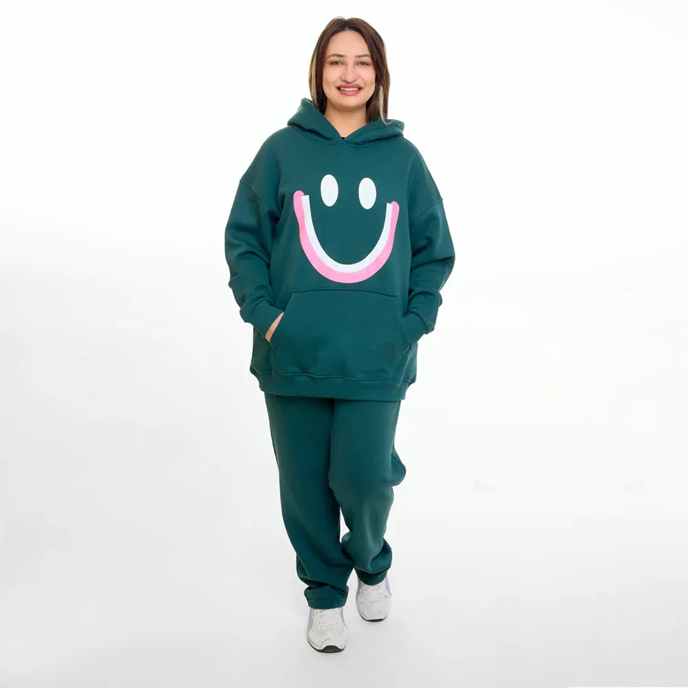 سويتشيرت هودي مطبوع حريمى قطن اسفنجي اخضر شتوي من اتش - smile-Green