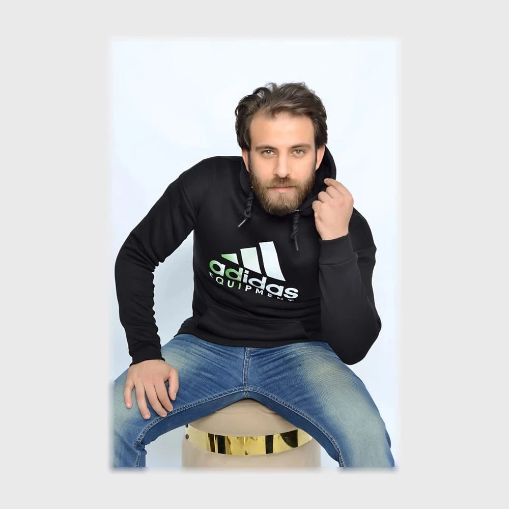 سويتشيرت هودي مطبوع رجالي ملتون قطن اسفنجي اسود شتوي من الهيبه - 2480-B