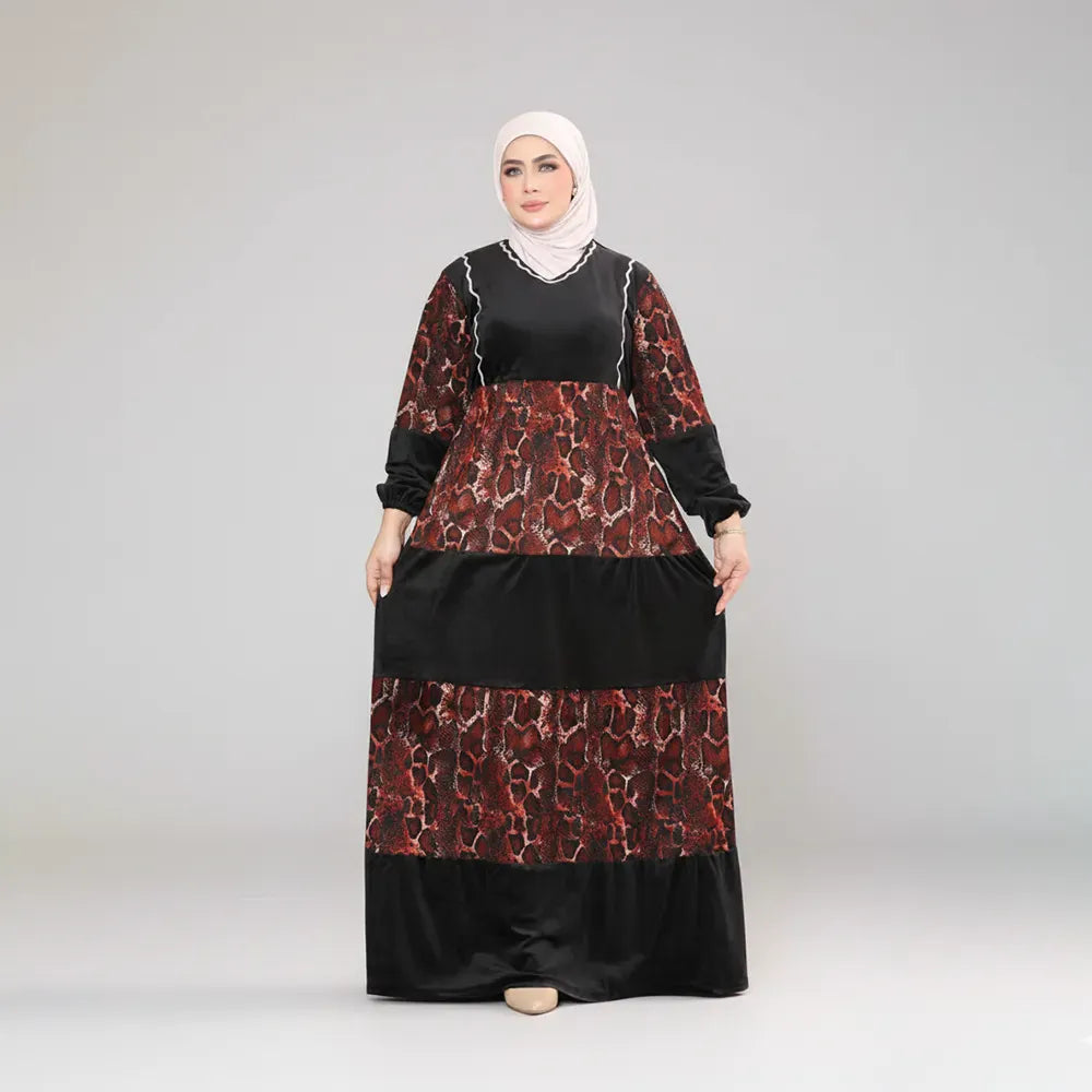 عباية استقبال حريمى قطيفة*قطن مشجر تايجر الوان متعددة شتوى من اس كيو بي - 716