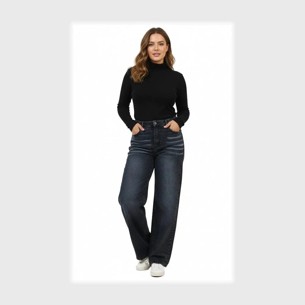 بنطلون جينز حريمي جينز ميجان مستورد نسبه 78%قطن 2% ليكرا 20% بوليستر اسود جميع المواسم من ام كيه - Wid-lege-women-black