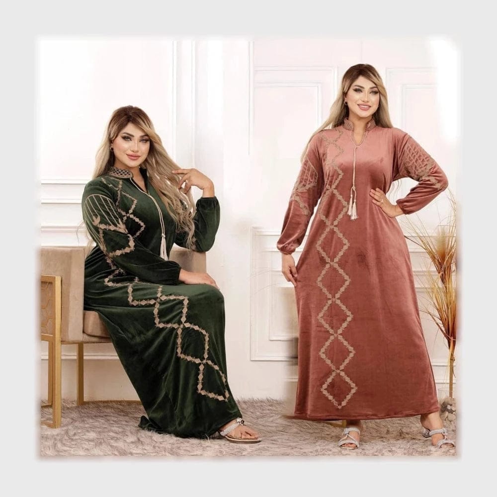 عباية إستقبال حريمي قطيفة هايدي مستورد وش واحد لوكس تطريز ألوان متعددة شتوي من إيه إل واي - 23020-11