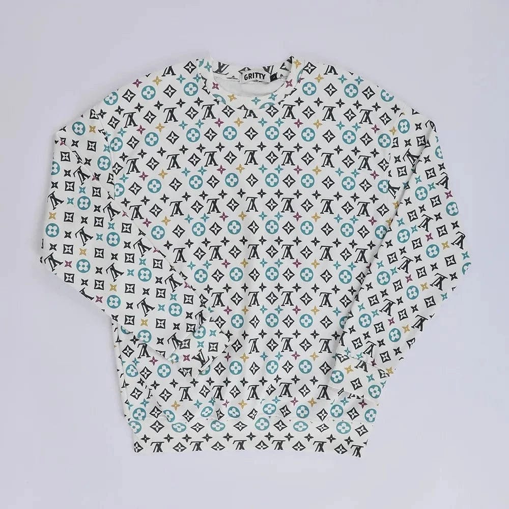 سويتشيرت راوند رجالي تلبيس اوفر سايز بلوش ناعم ابيض من جريتي - GR-36