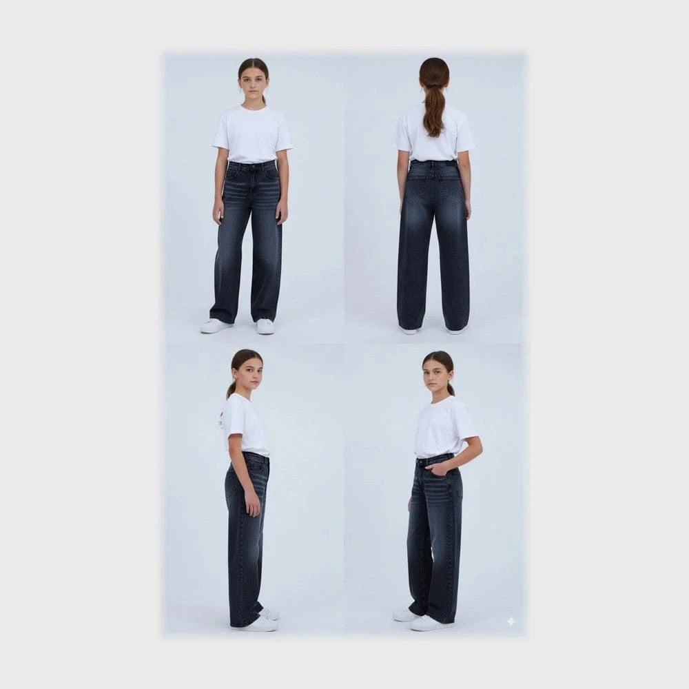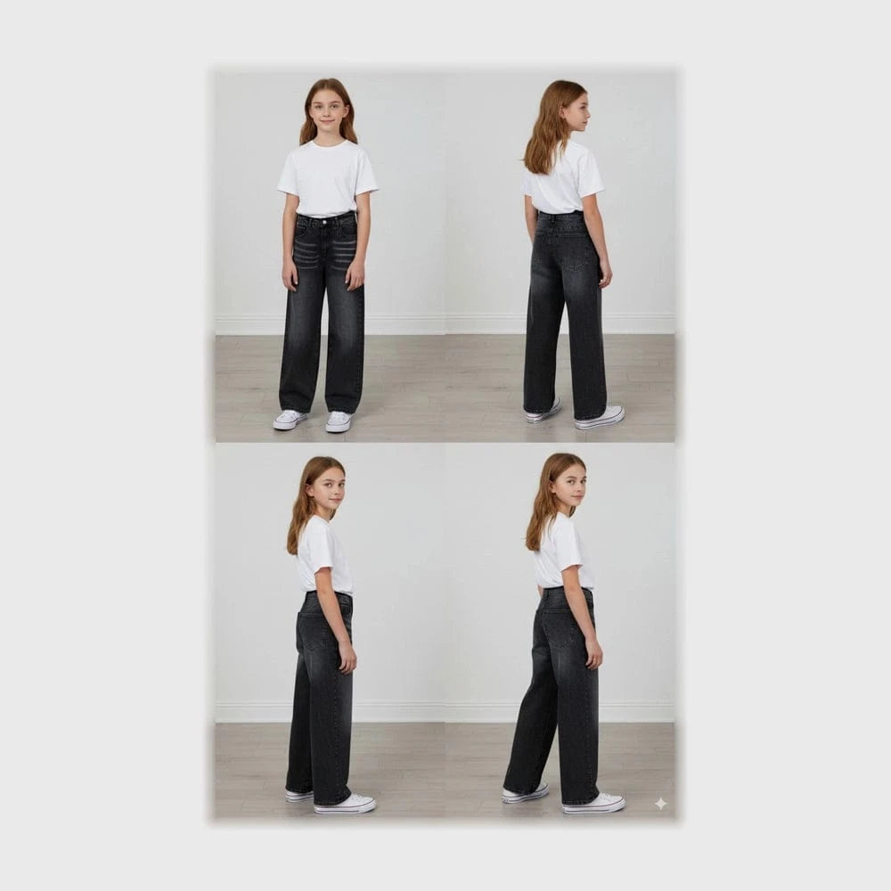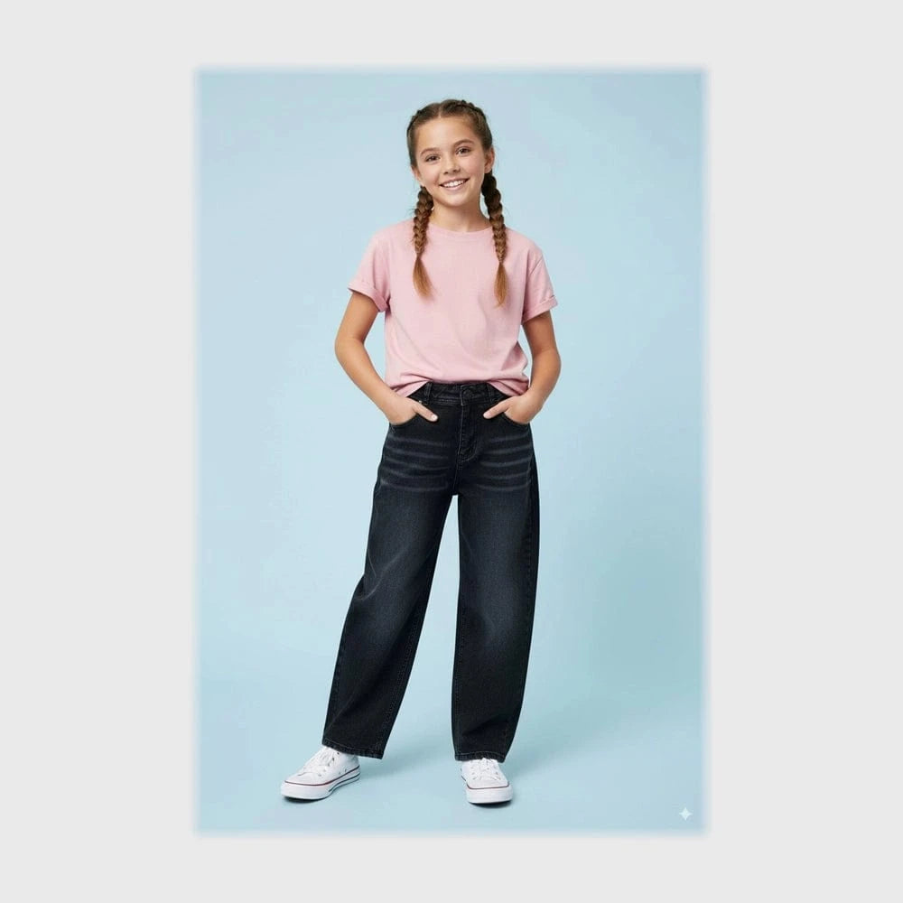 بنطلون جينز اطفالي محير جينز ميجان مستورد نسبه 78%قطن 2% ليكرا 20% بوليستر اسود جميع المواسم من ام كيه - Wid-lege-kids-black