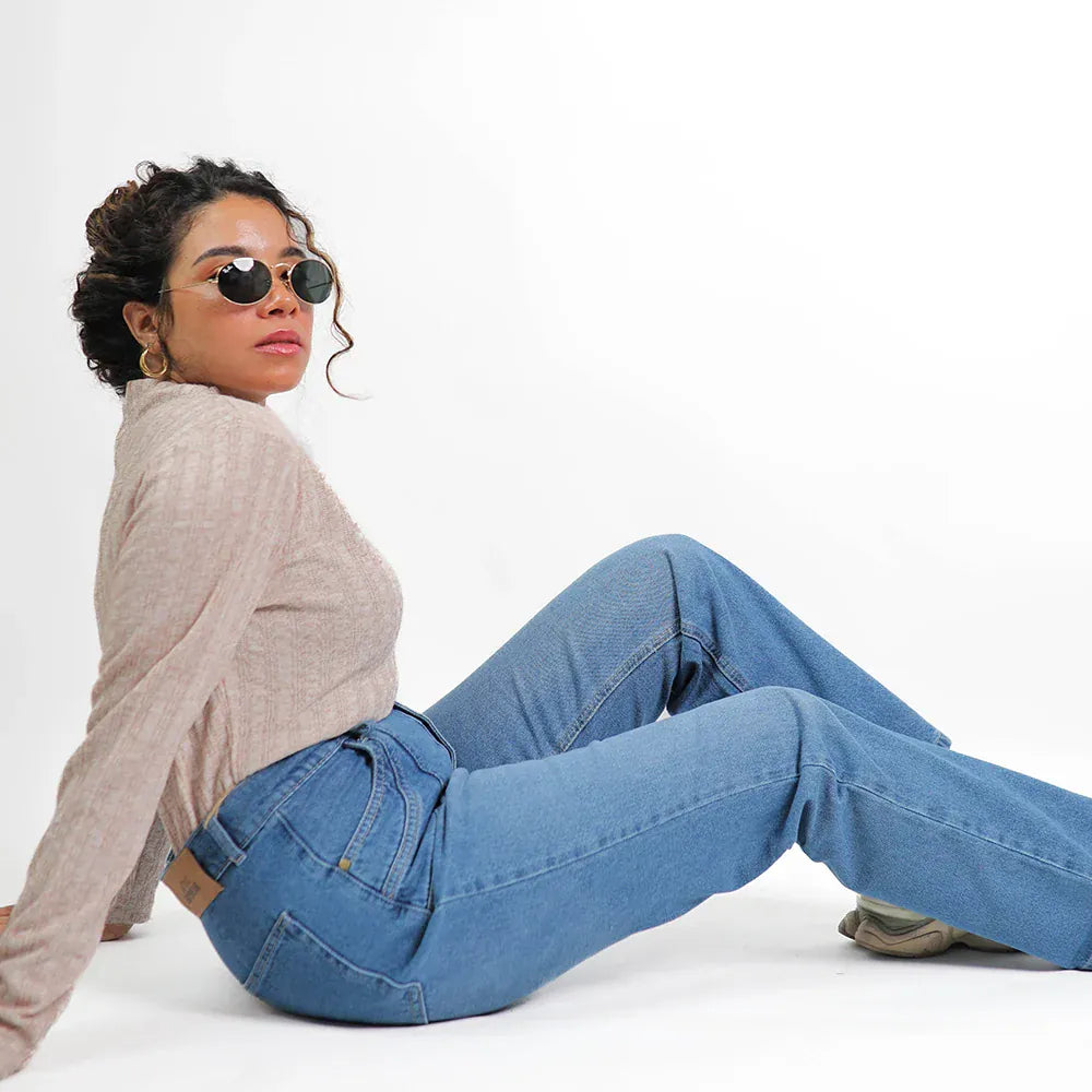بنطلون ستريت حريمي جينز رباعيه قطن 100 % كحلي وسط جميع المواسم من ايجي وير جينز - wlg03-465-medumblue