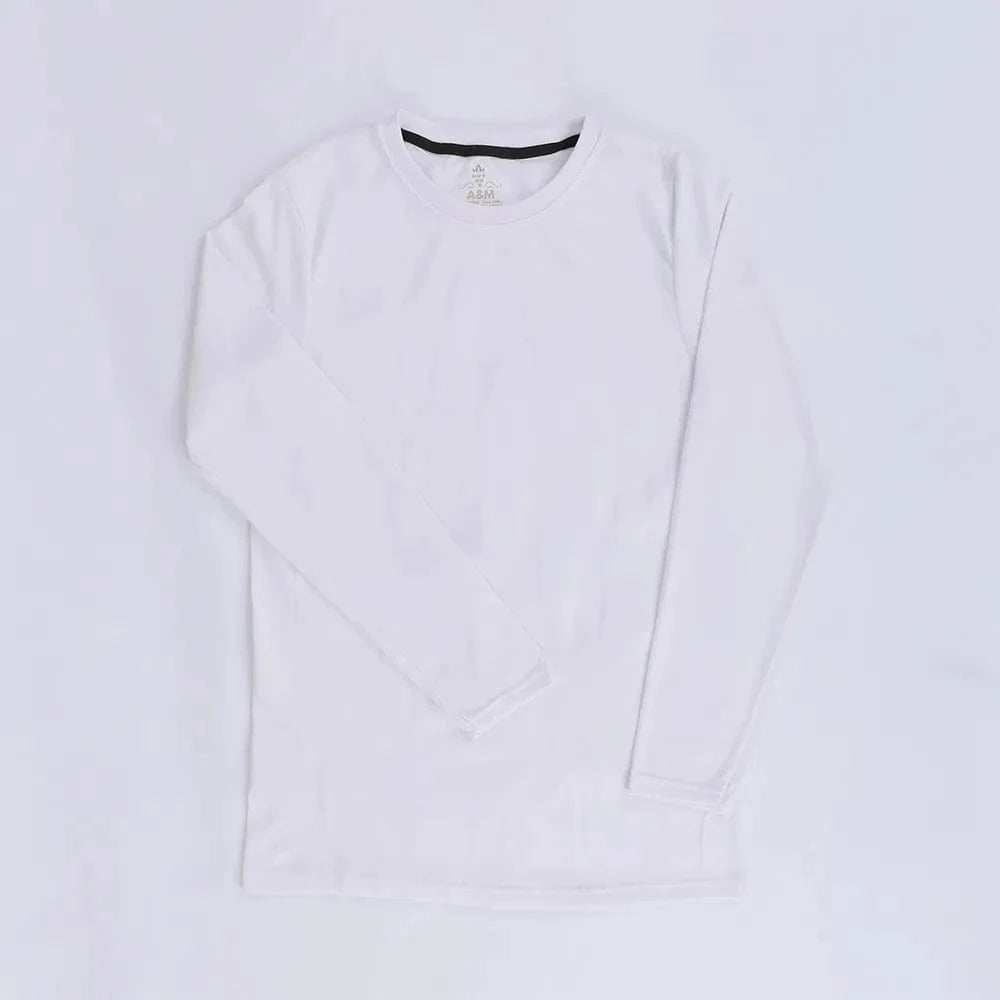 تيشيرت بأكمام طويلة رجالي - حريمي ( مقاس خاص ) براسولا قطن مخلوط 65% قطن - 35% بولييستر ابيض شتوي من جي زد - 205