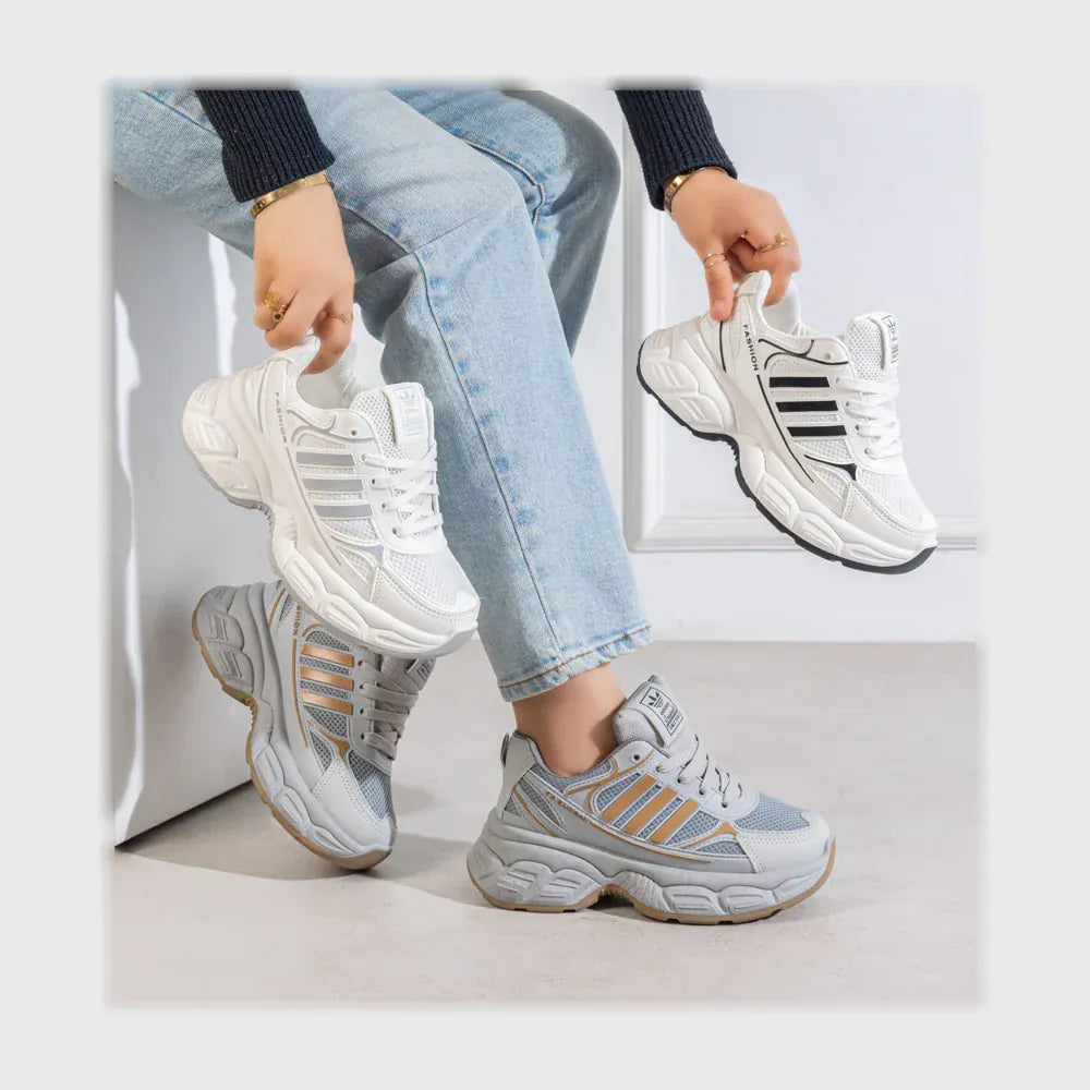حذاء سنيكرز حريمى فوندي جلد إسكاي مستورد ونعل PVC حقن الوان متعددة جميع المواسم من بي ان شوز - w105