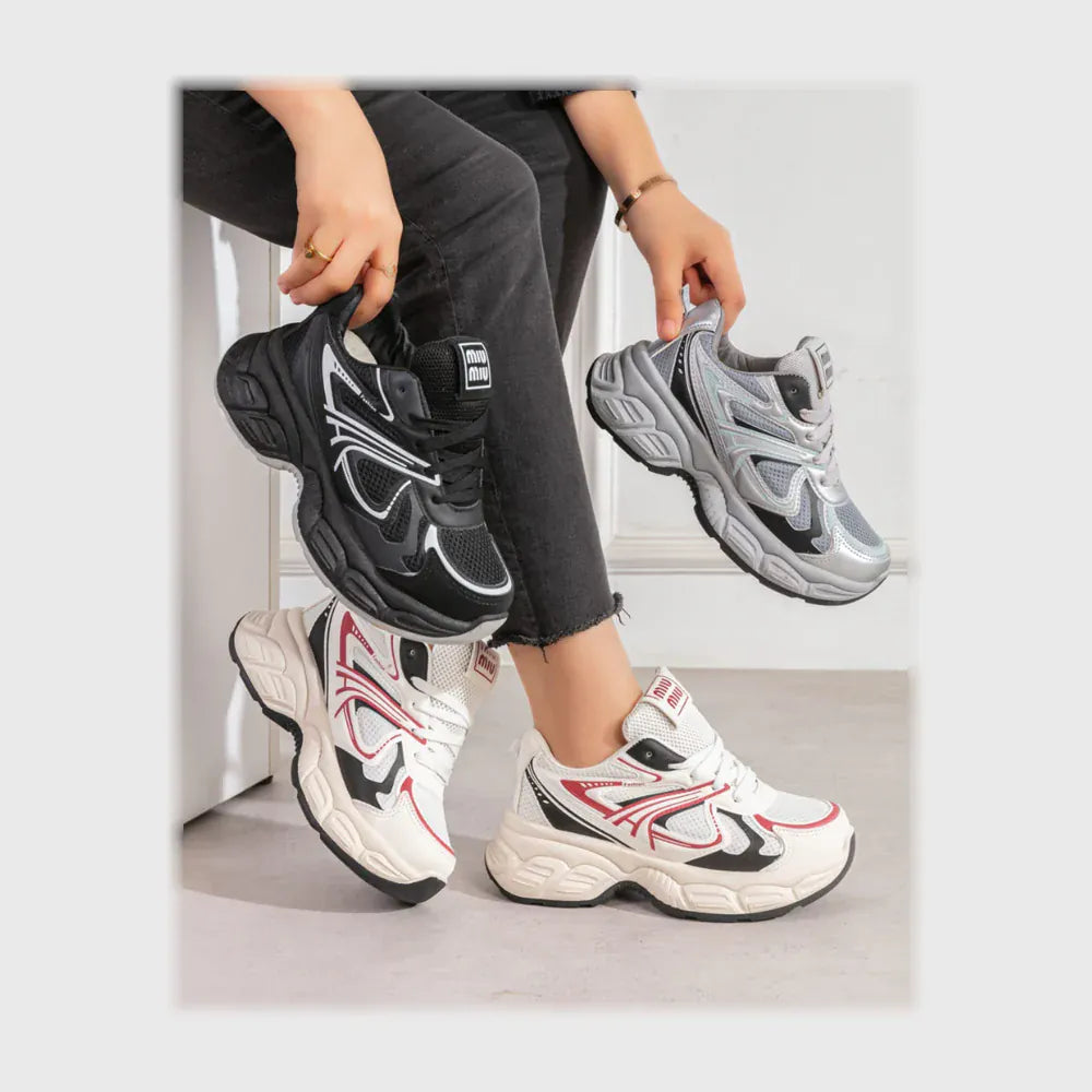 حذاء سنيكرز حريمى فوندي جلد إسكاي مستورد ونعل PVC حقن الوان متعددة جميع المواسم من بي ان شوز - w208