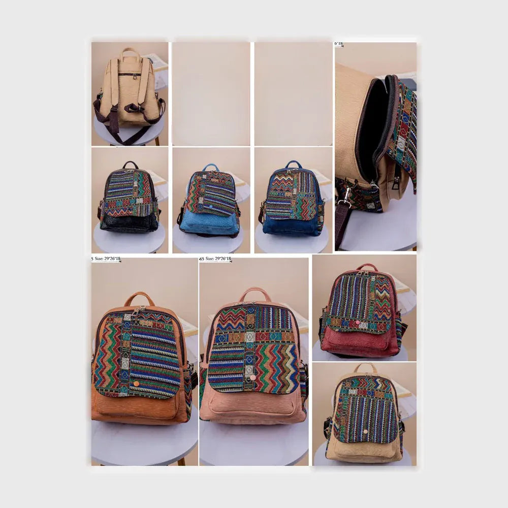 المقاسات: 29*26*18 العلامة التجارية: المتحف للشنط نوع المنتج : شنطه اللون: الوان متعددة وصف المنتج: شنطه ظهر الخامة: جلد الفئة المستهدفة: حريمى