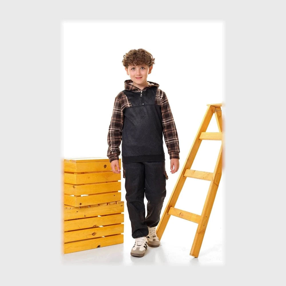 طقم تيشرت وبنطلون اولادي قطيفة جكار تقيل ضهر هايدي ألوان متعددة من روزانا - 4193
