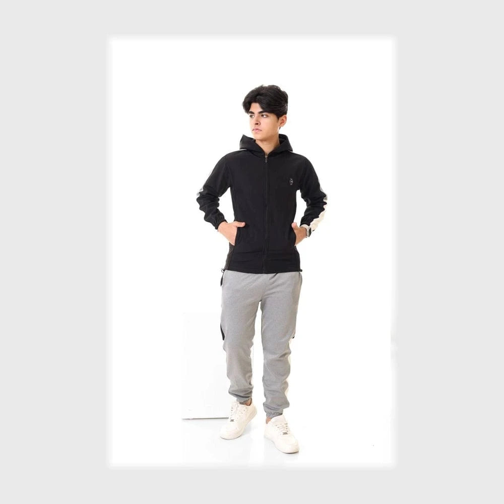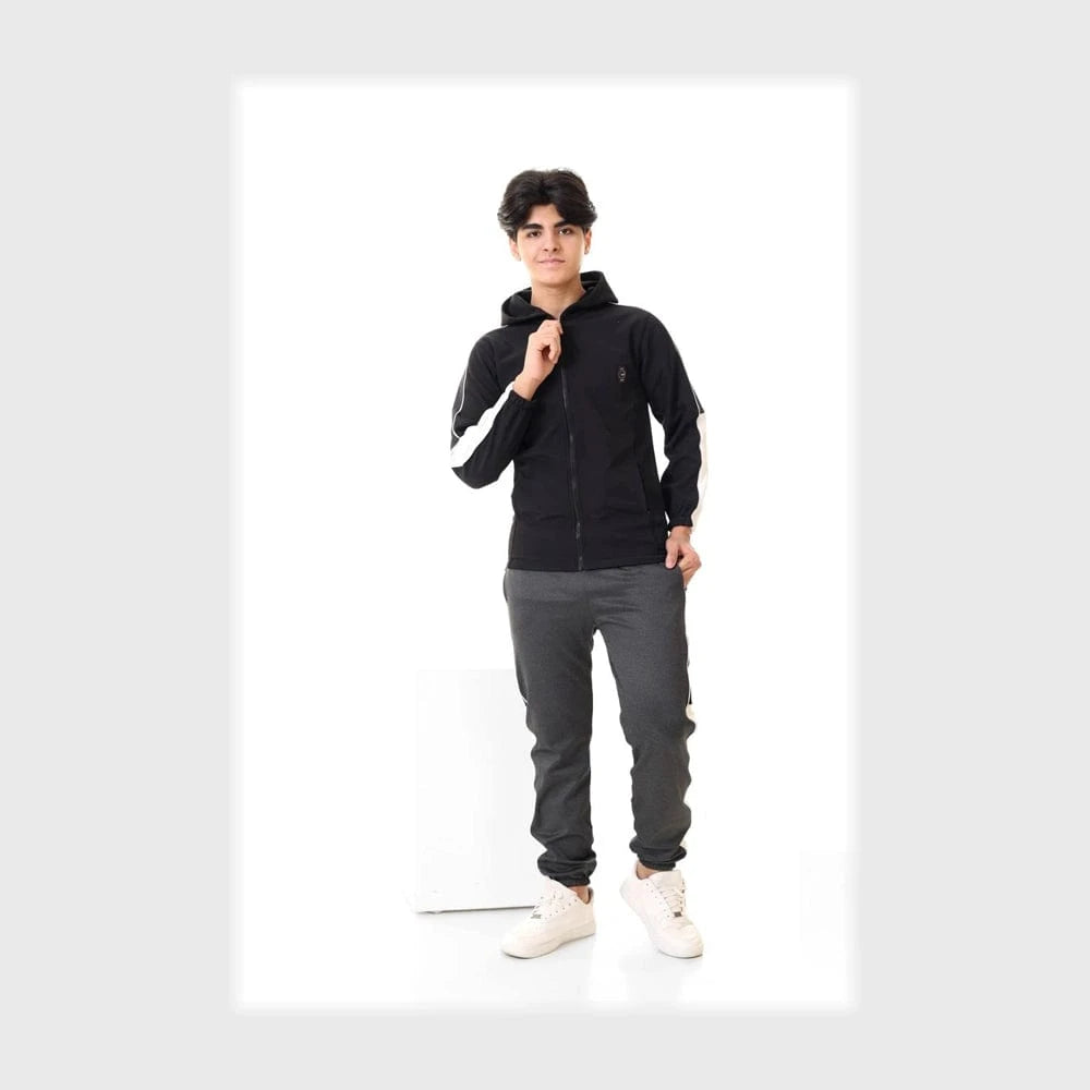 طقم قطعتين اولادي اولادي جاكت سوفت مبطن تقيل ضهر هايدي و بنطلون تك فليس مبطن ألوان متعددة من روزانا - 4195