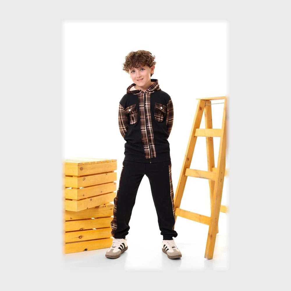 طقم قطعتين اولادي اولادي قماش ملتون جكار سلسلة مبطن مع كاروه مبطن ضهر هايدي ألوان متعددة من روزانا - 4191