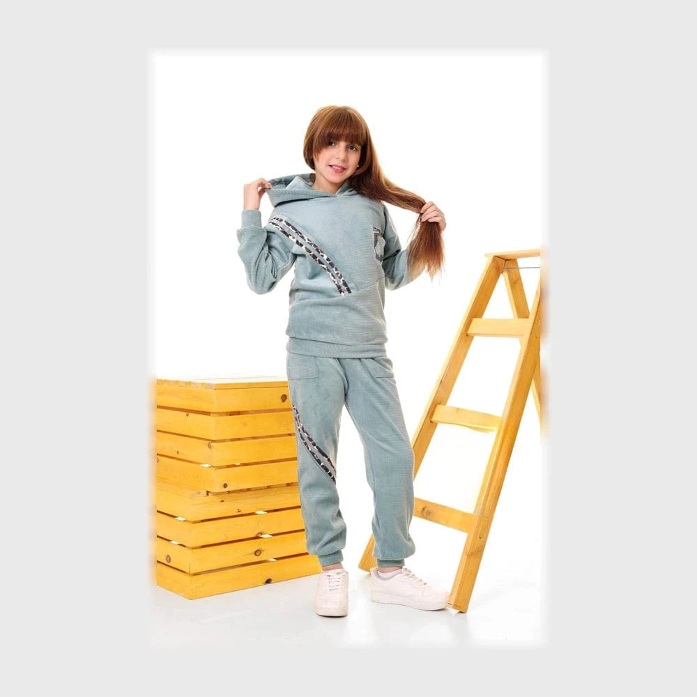 طقم قطعتين بناتي بناتي قماش قطيفة بوندكس جكار مبطن ضهر هايدي ألوان متعددة من روزانا - 4200