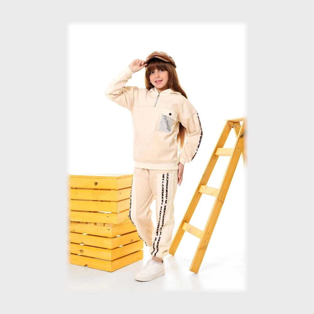 طقم قطعتين بناتي بناتي قماش قطيفة جكار تقيل مبطن ضهر هايدي مع ملتون مبطن ألوان متعددة من روزانا - 4197