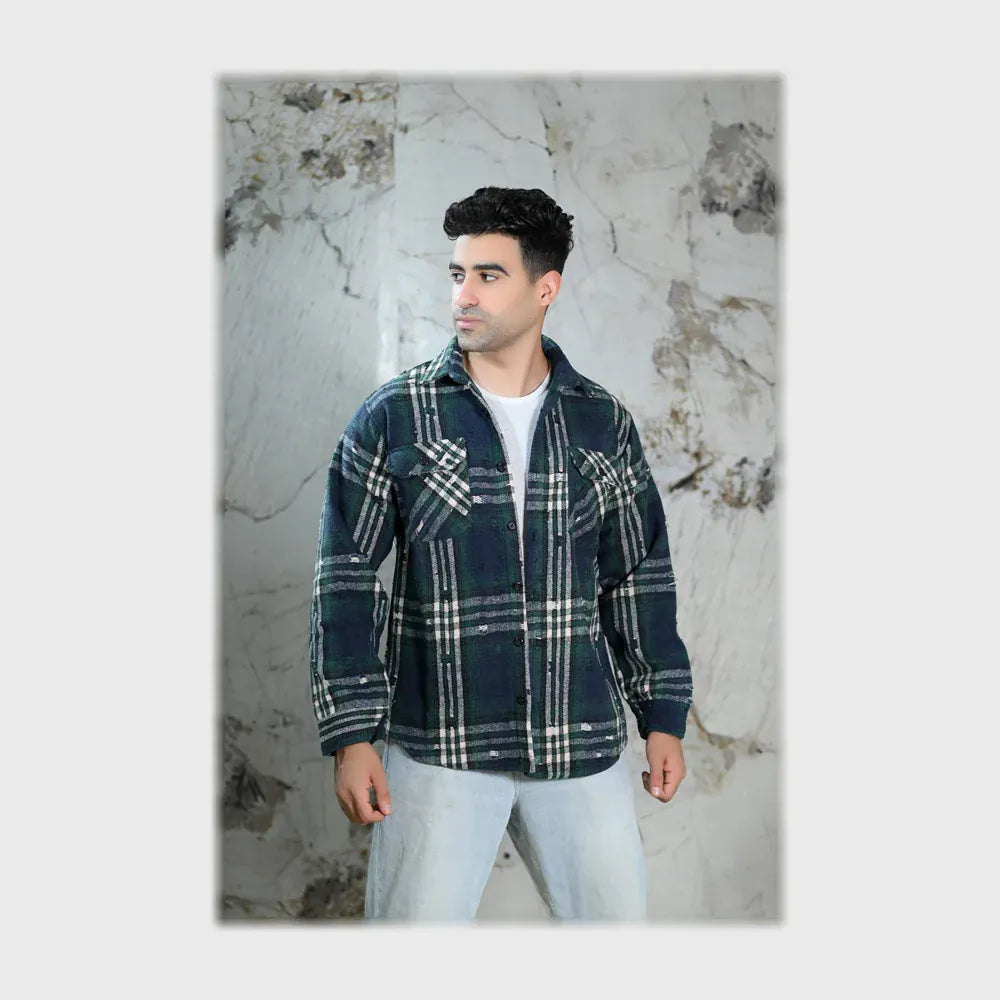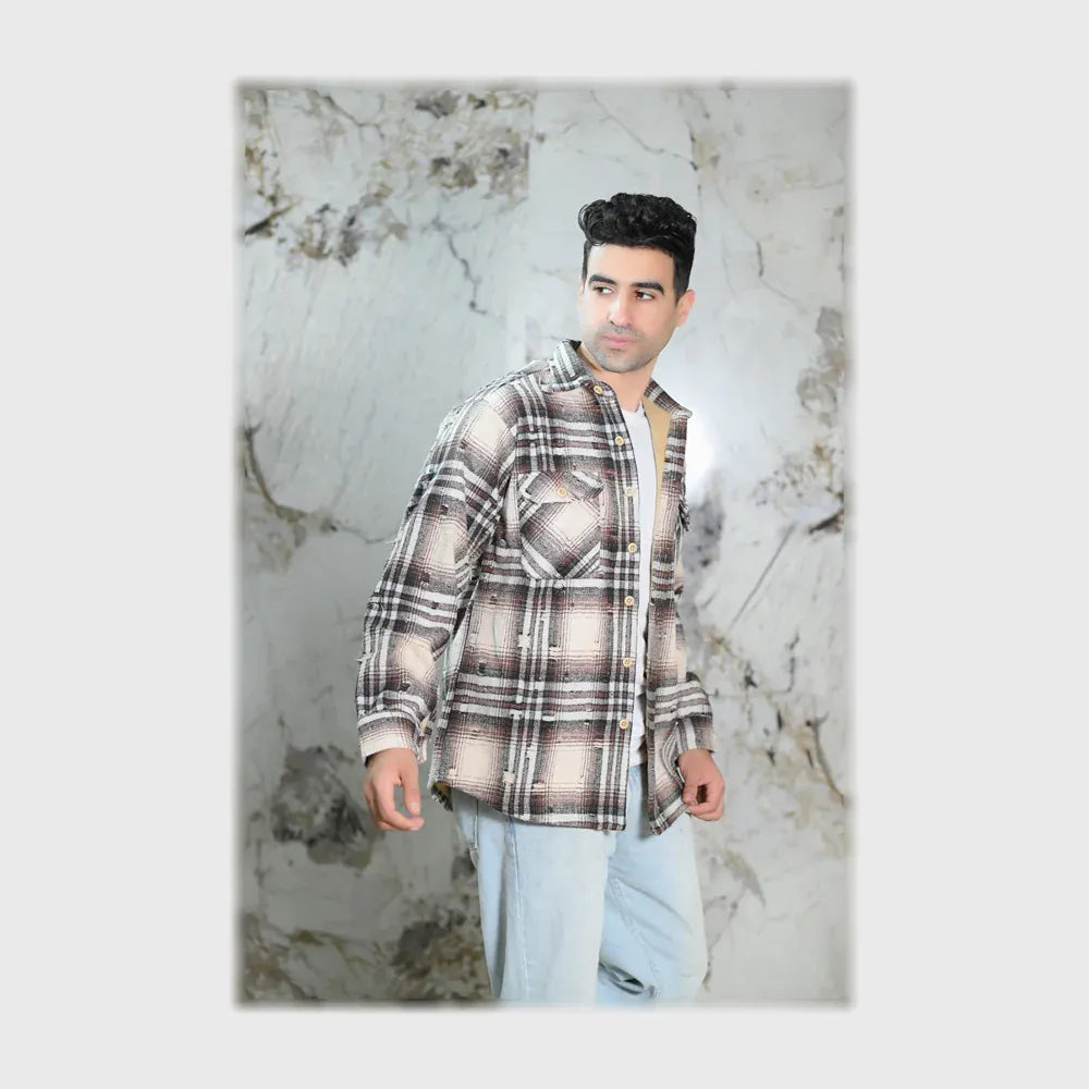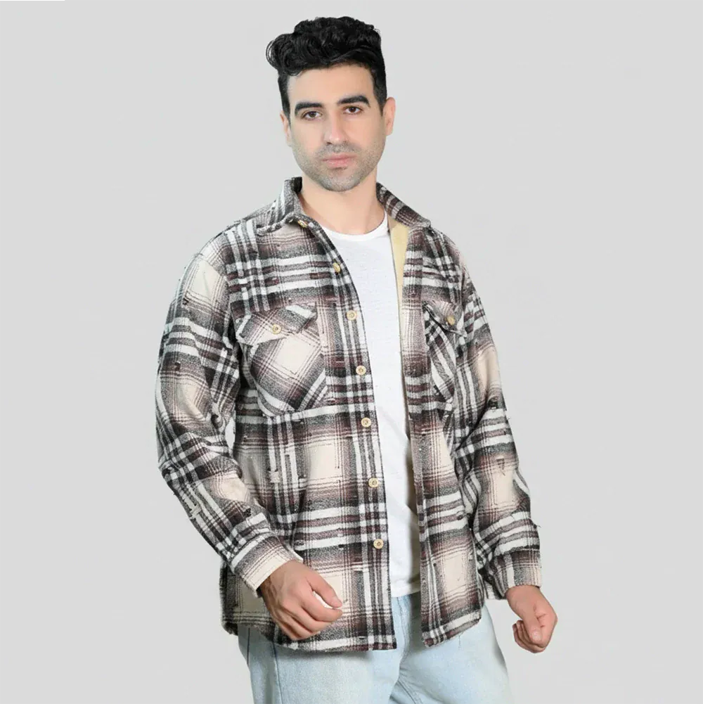 قميص اكمام طويلة فرو تقطيع رجالى جوخ الوان متعددة شتوي من مودرن اويت فيت - 596