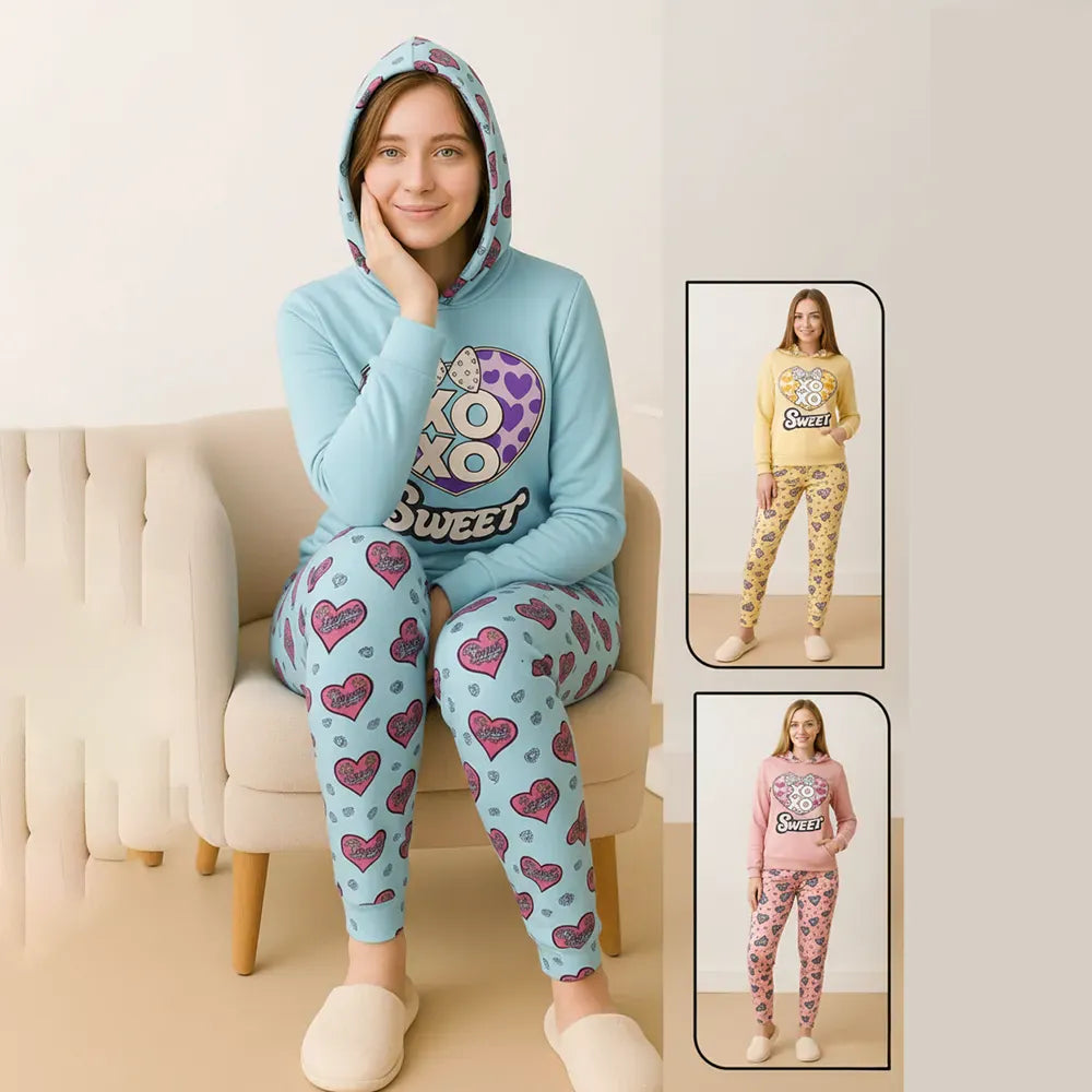 بيجامه مطبوع قطعتين بناتي فايبر مكستر مستورد الوان متعدده شتوي من ايه ال واي - 600