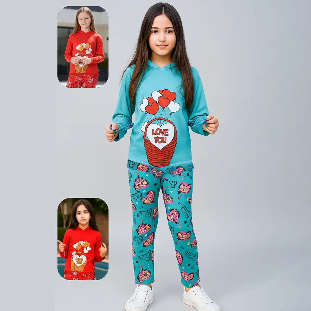 بيجامه مطبوع قطعتين بناتي انترلوك موهير مبطن تقيل جدا الوان متعدده شتوي من ايه ال واي - 611