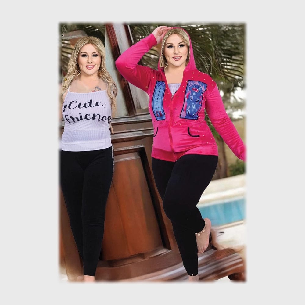 المقاسات: مقاس موحد تلبيس من 80 الي 120 كيلو العلامة التجارية: ايه ال واي نوع المنتج : طقم اللون: الوان متعدده وصف المنتج: طقم 3 قطع مطبوع مطعم بخرز كبس الخامة: قطيفه الفئة المستهدفة: حريمي