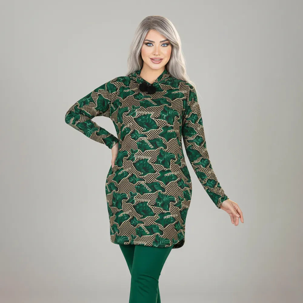 طقم تونيك مطبوع قطعتين حريمي انترلوك مبطن الوان متعدده شتوي من ايه ال واي - 5100